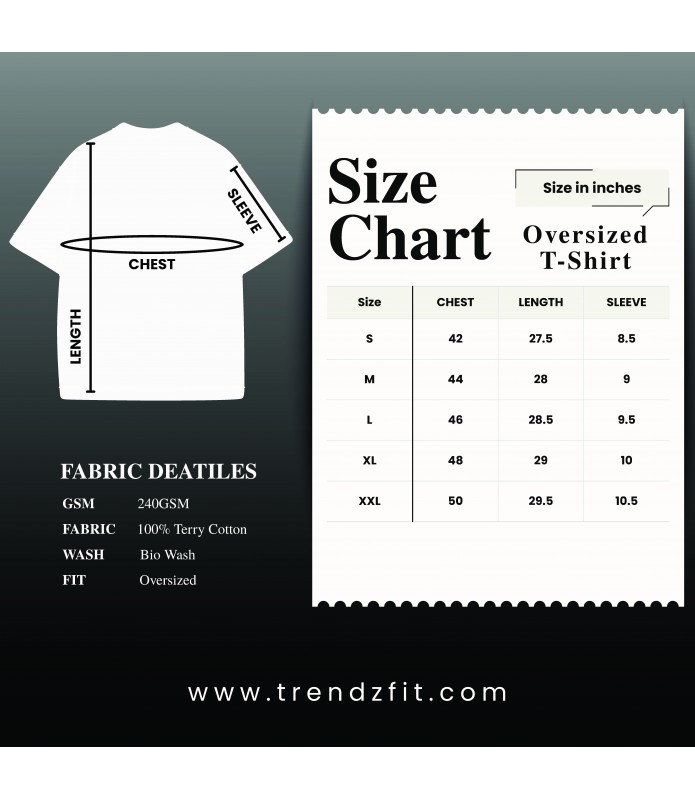Designed with a relaxed oversized fit, this T-shirt is crafted from 100% Terry Cotton with a durable 240 GSM fabric weight. The bio-wash finish ensures softness, comfort, and long-lasting quality, making it perfect for a trendy yet comfortable everyday look.